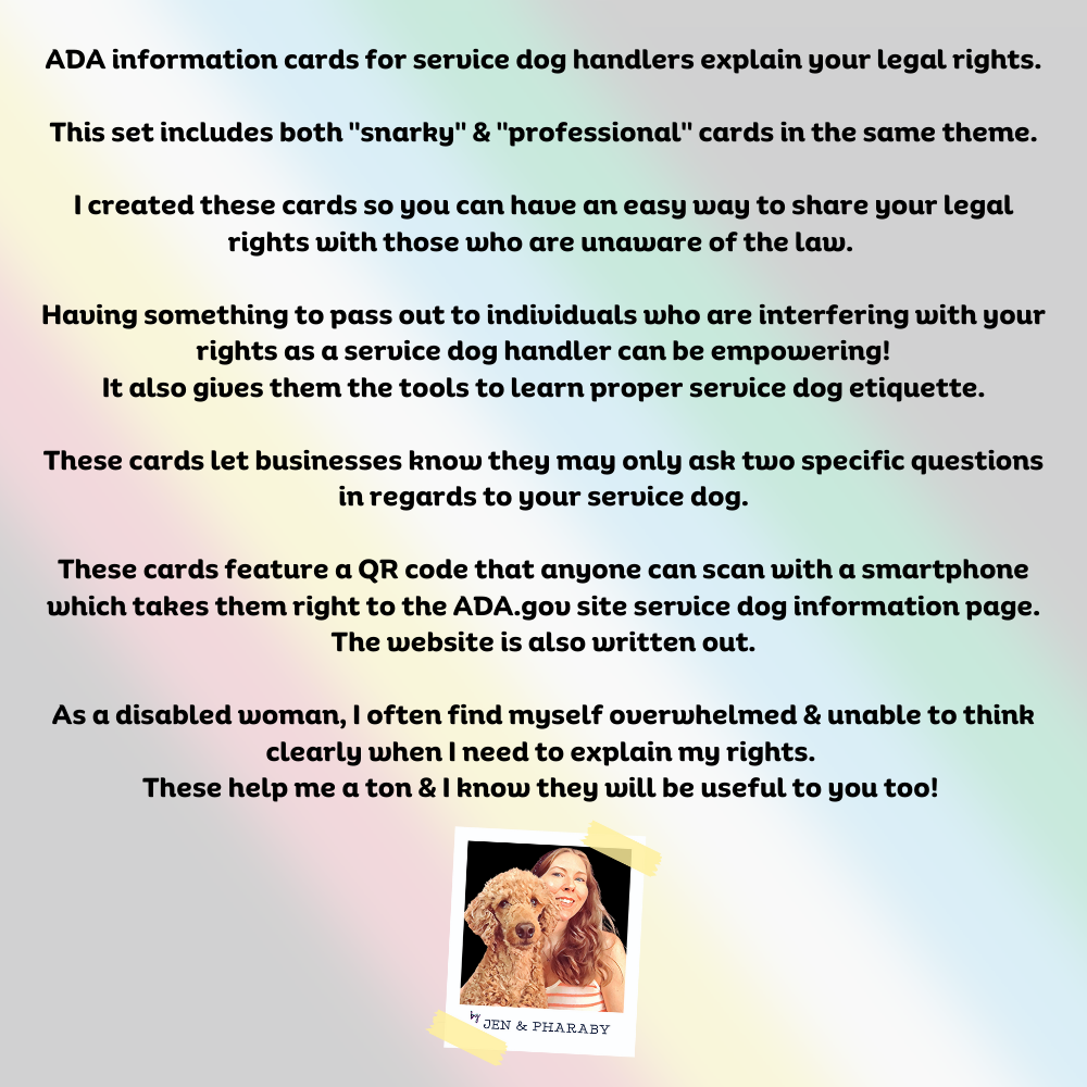 Having something to pass out to individuals who are interfering with your rights as a service dog handler can be empowering!